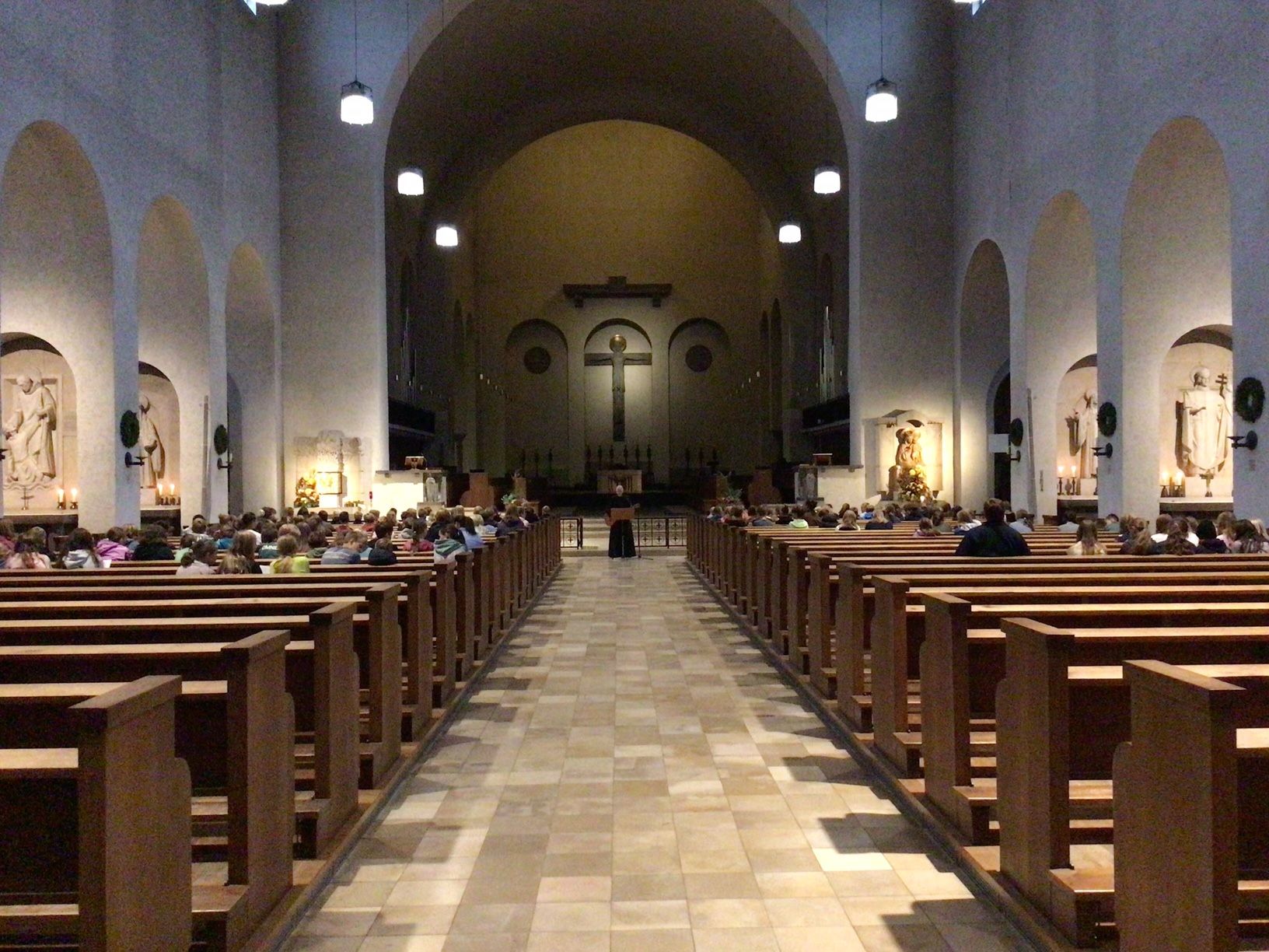 Mit einem feierlichen Gottesdienst unter dem Jahresmotto „Spuren hinterlassen“ begann die gesamte Schulfamilie des Egbert-Gymnasiums das neue Schuljahr. Schülerinnen und Schüler, Lehrkräfte, Eltern und Mönche waren dazu in der Abteikirche Münsterschwarzach zusammengekommen.