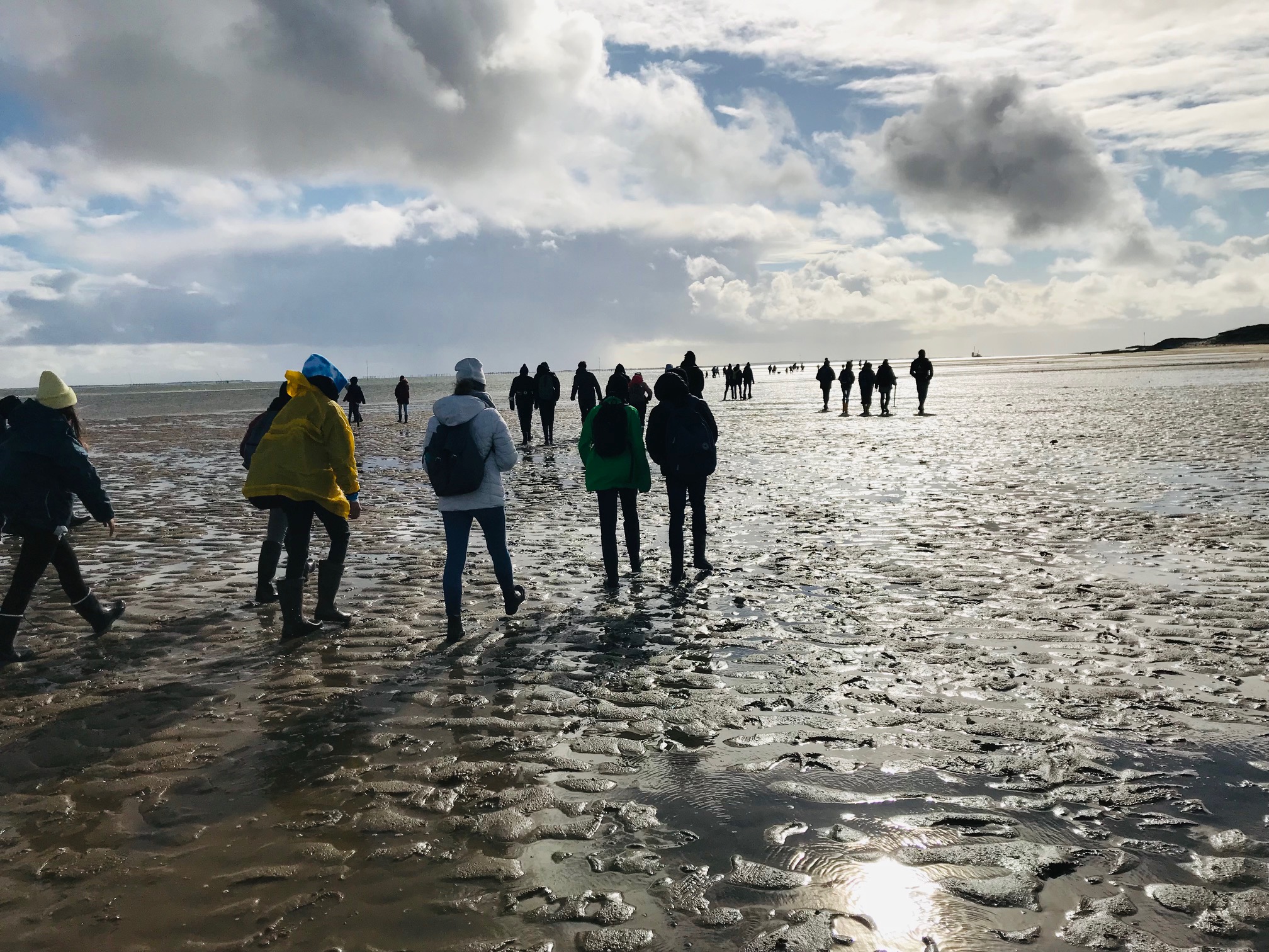Münsterschwarzach/Sylt. Vom 11. bis 15. Oktober 2021 hat die Klasse 8a des Egbert-Gymnasiums mit ihren Begleitlehrern während der heiß ersehnten Klassenfahrt auf Sylt tief durchgeatmet. Im Rahmen des Fahrtenkonzeptes des EGM haben die Jugendlichen in Anbindung an den Biologie- und Religionsunterricht das einzigartige Ökosystem des Wattenmeeres kennengelernt sowie im Einklang mit dem Naturerlebnis Meer dem Schöpfungsgedanken nachgespürt. Als Klasse gemeinsam all dies zu erleben, verbindet und lässt die Gemeinschaft mit Spaß und Offenheit füreinander wachsen. Begeistert zeigte sich Lehrerin Karin Illner bei der Rückkehr: „Es ist uns gelungen, gemeinsam aufzuatmen – unter erstaunlich sonnigem Himmel. Ein Geschenk war das!“ Foto Karin Illner