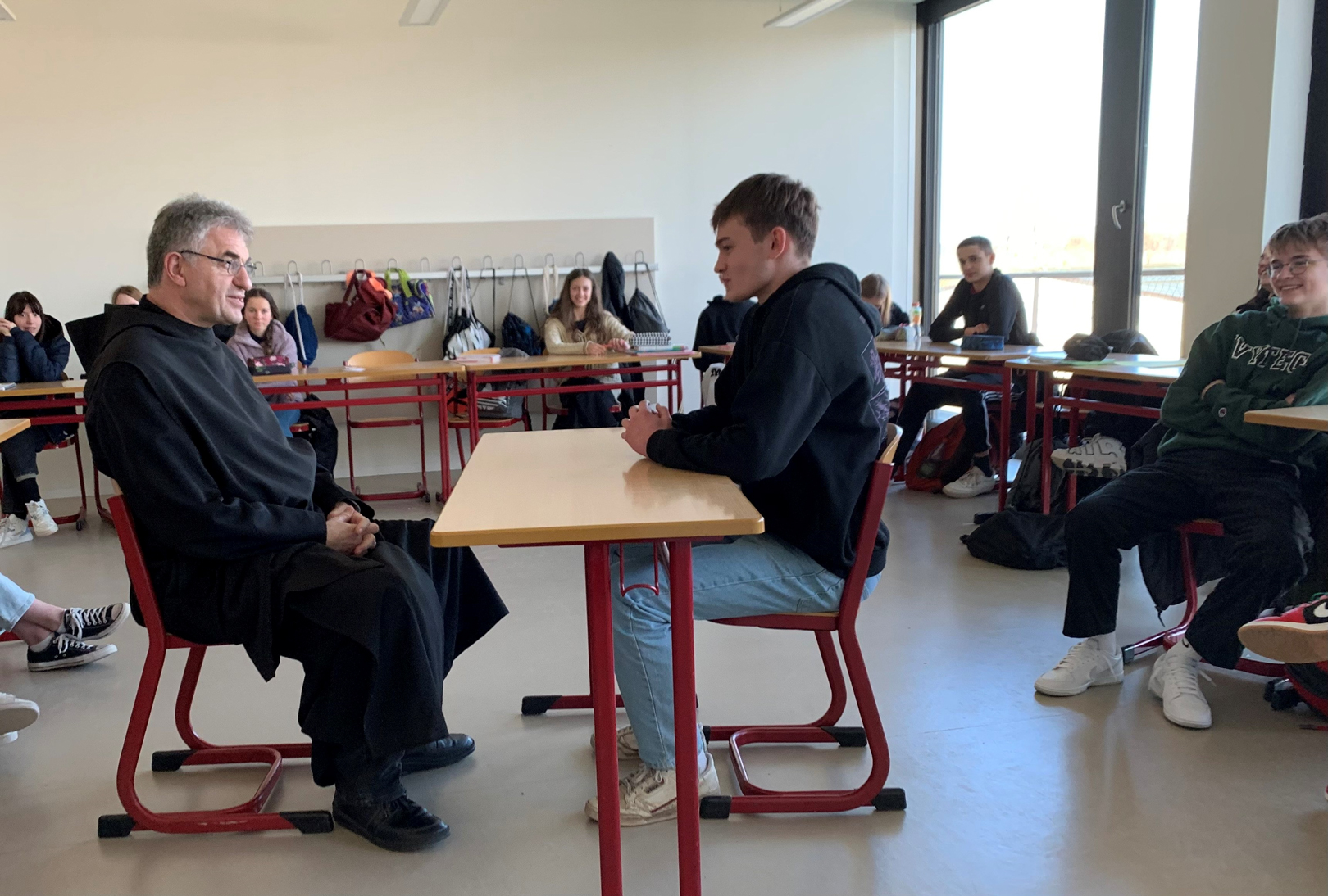 Br. Stephan Veith im Rollenspiel mit Schülern