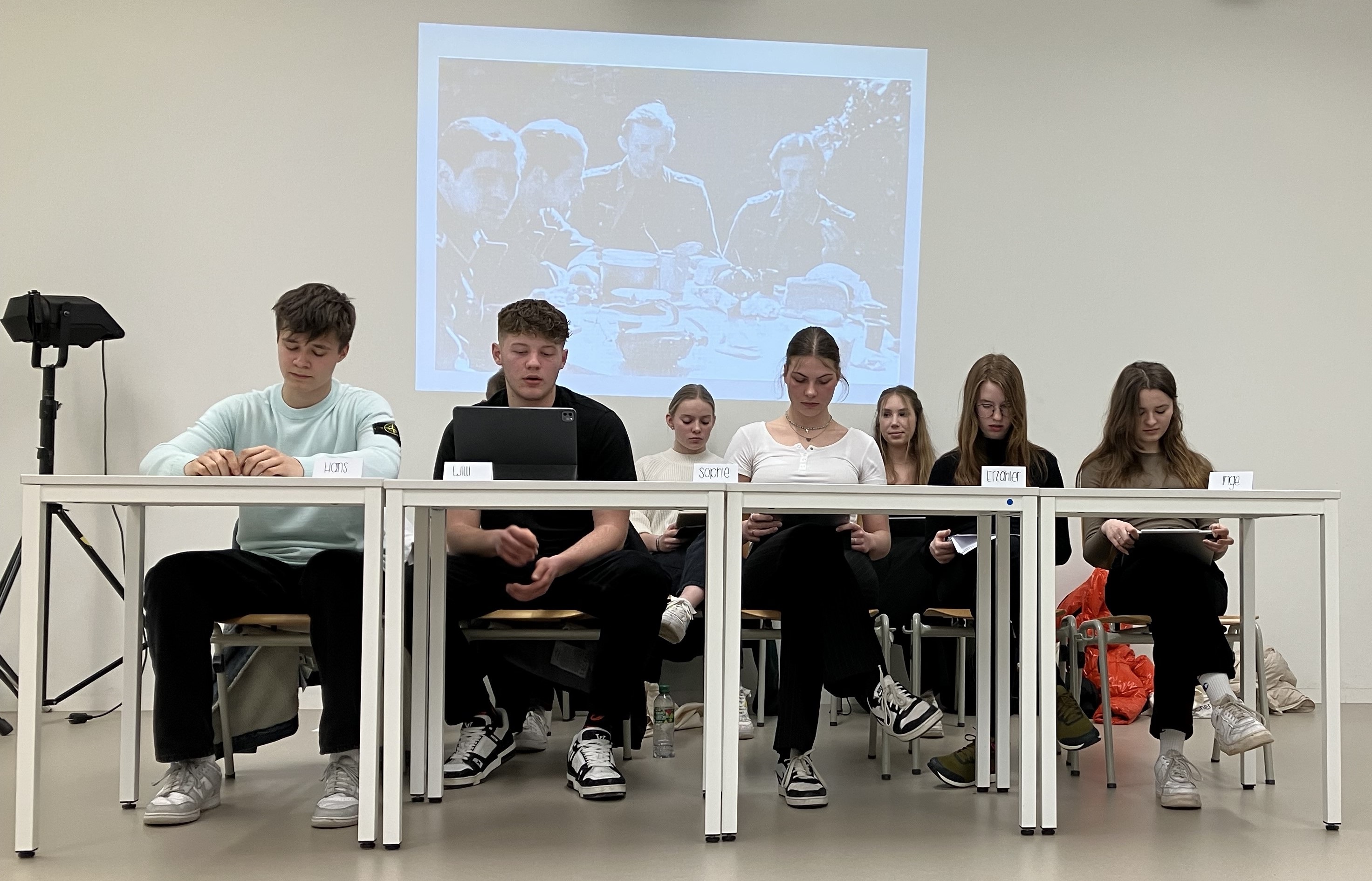 Bildunterschrift: Schülerinnen und Schüler des EGM lesen Originaltexte der Weißen Rose vor. Foto Charlotte Seystahl