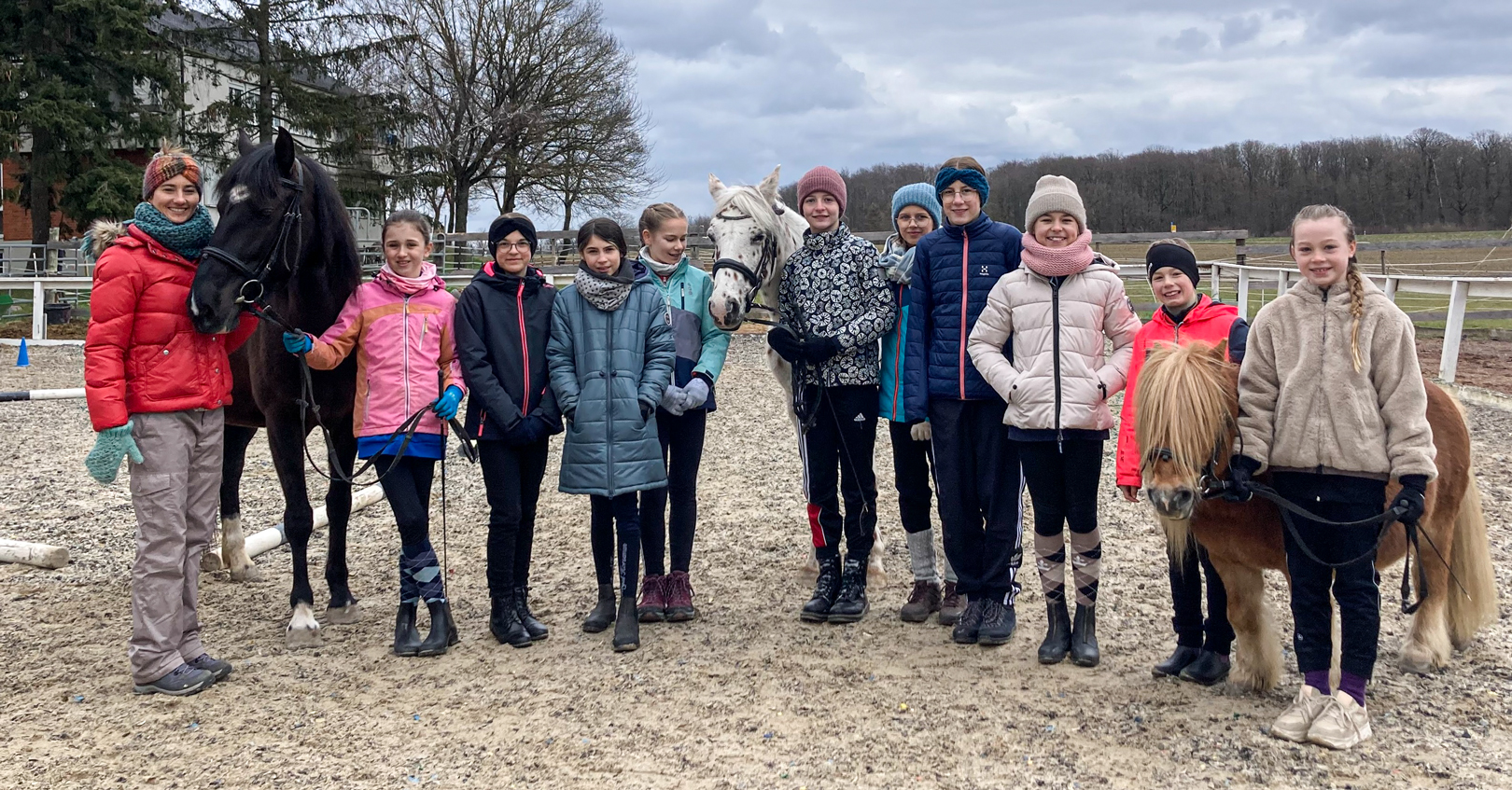 Zum Foto: Die Voltigier-Trainerin und ihre Schützlinge (von links): Mona Schwanfelder, Lilly Fackelmann, Leni Schönberger, Lilly Heine, Sina Weigand, Lilly Zang, Leana Gernert, Maria Memmel, Larissa Kuhn, Mia Stütz und Merle Geiger.