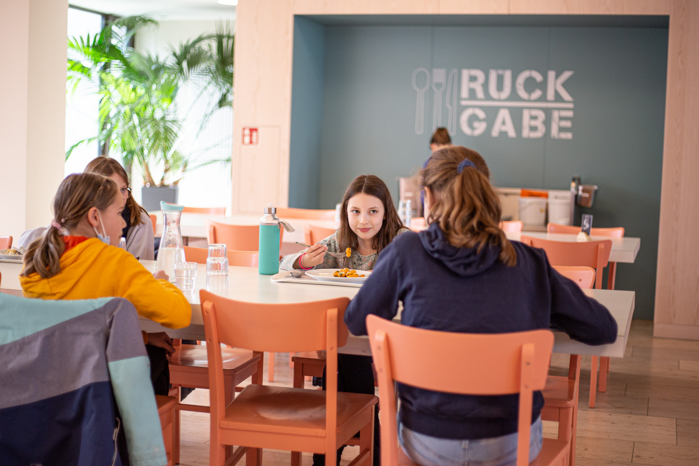 Das Mittagessen kann für alle Schüler und Schülerinnen zusätzlich für jede Woche nach eigener Wahl über Mensa-Max gebucht werden. Es kann zwischen Vollkost und vegetarischen Gerichten gewählt werden.
