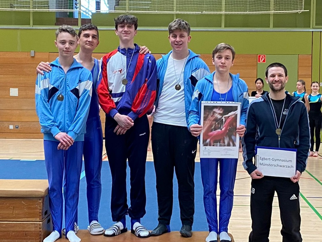 Münsterschwarzach/Nördlingen. Ein tolles Ereignis durfte die Wettkampfmannschaft Gerätturnen der Jungen II (06/07) beim Landesfinale in Nördlingen erleben. Bei den bayerischen Meisterschaften freute sich das Team von Sportlehrer Julian Binzenhöfer über die Bronzemedaille. Ein besonderes Highlight war unter anderem das Turnen in der bestens ausgestatteten Turnhalle des örtlichen Turnvereins KTV Ries sowie die Übernachtung in einem Jugendhotel. Als einzige Mannschaft, die ihre Übungen lediglich im Sportunterricht der Schule erarbeitet hatte, war der ganz große Wurf für die EGM-Turner zwar noch etwas weit entfernt, jedoch sind die gezeigten Leistungen unter diesen Umständen umso höher einzuschätzen. Die Motivation, sich auch im kommenden Jahr zu präsentieren, ist jedenfalls höher denn je.