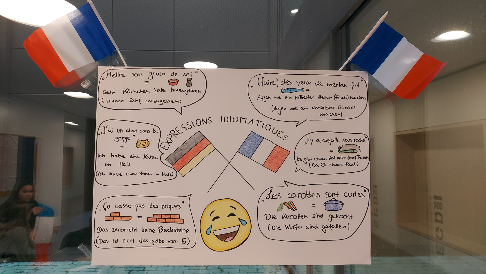 Am Montag, 22. Januar 2024, wurde die Schulfamilie am EGM von süßem Crêpe Duft und den Farben unseres Nachbarlandes begrüßt.
