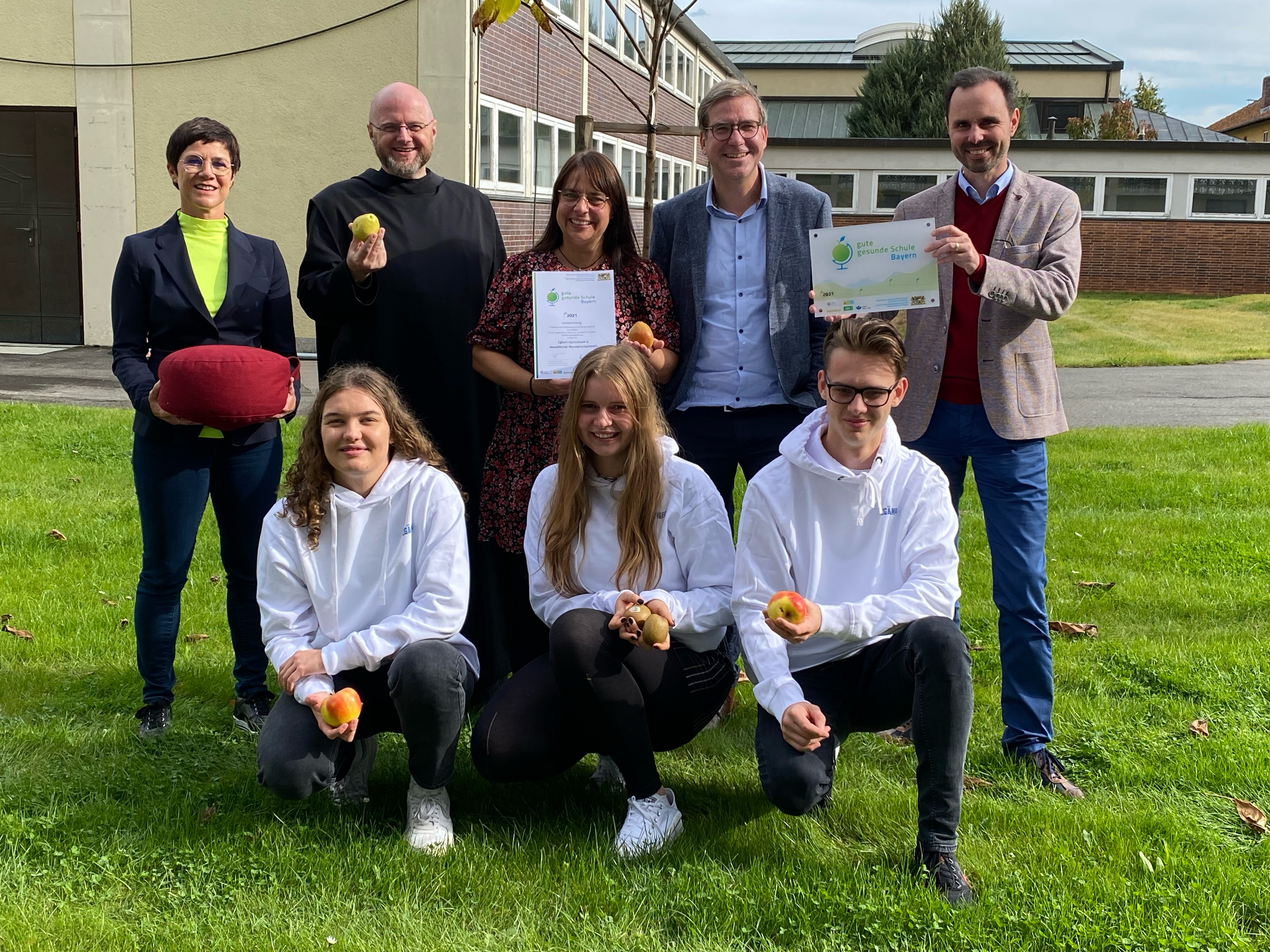 Das Egbert-Gymnasium wurde für zwei präventive Konzepte vom bayerischen Kultusminister Herr Prof. Dr. Michael Piazolo und dem bayerischen Gesundheitsminister Herrn Klaus Holotschek ausgezeichnet. im Das "Landesprogramm für die gute gesunde Schule Bayern" war auf der Suche nach Schulprojekten, die wirksam zur Steigerung von Gesundheit und Wohlbefinden der Schülerinnen und Schüler aber auch der Lehrkräfte beitragen.