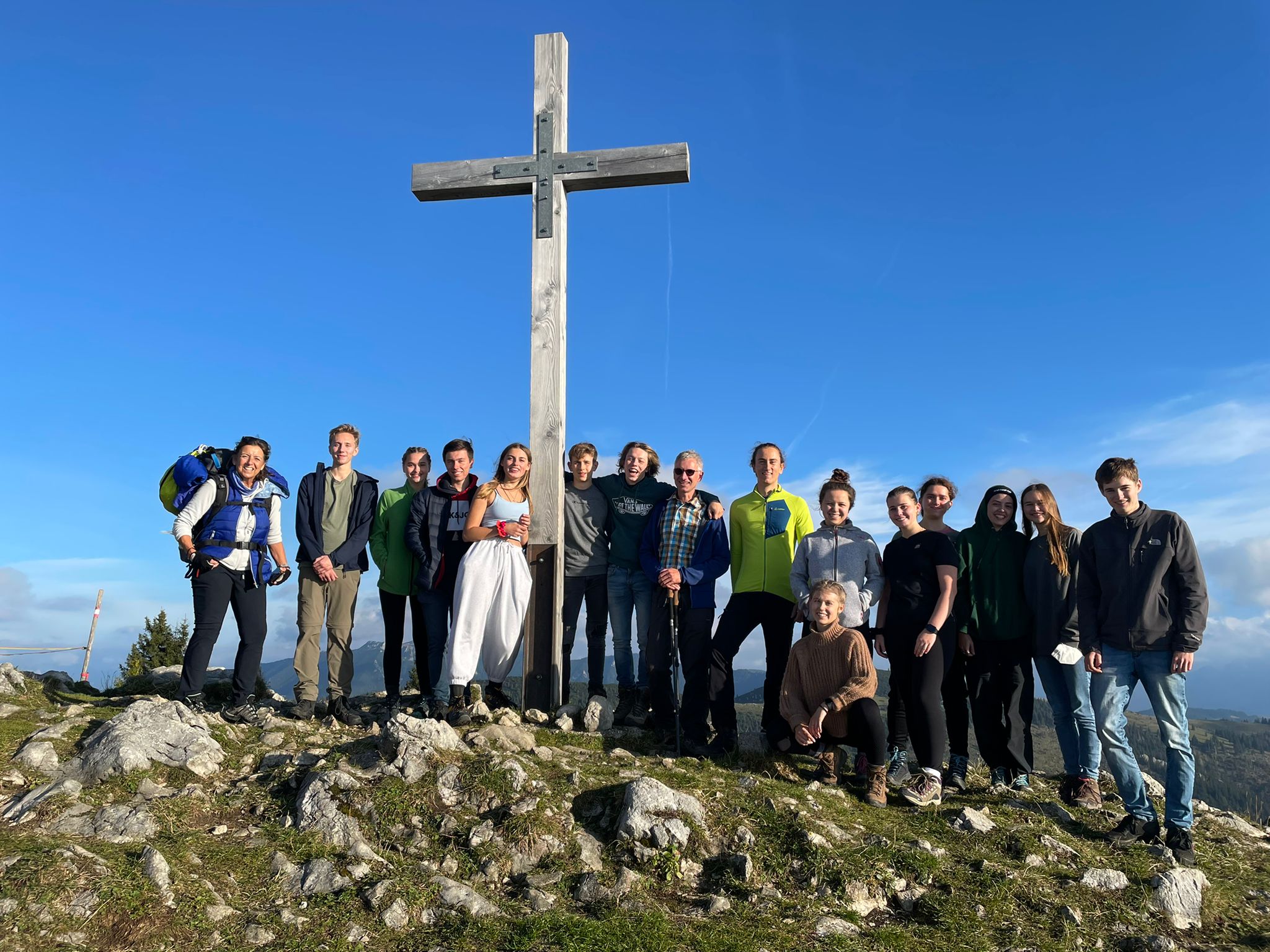 Münsterschwarzach/Chiemgau. Atemberaubende Natur, Gipfelglück und Panorama – das haben 15 Schülerinnen und Schüler aus der Abschlussklasse des Egbert-Gymnasiums drei Tage lang im Chiemgau erleben dürfen. Nachdem sie mit der Bahn in Aschau angekommen waren, ging es hoch zu der auf über 1500 Metern gelegenen Hochries-Hütte, wo man sich bei leckeren Käsespätzle für die kommenden Anstrengungen stärkte. Am nächsten Morgen nämlich standen einige schon um 6 Uhr auf, um den Sonnenaufgang zu erleben. Anschließend führte der Weg sechs Stunden lang zur Spitzsteinhütte, wobei man ein Stück weit als Grenzgänger zwischen Deutschland und Österreich unterwegs war. Nach einem Spieleabend wartete das Matratzenlager unter dem Dach auf die müden Wanderer.