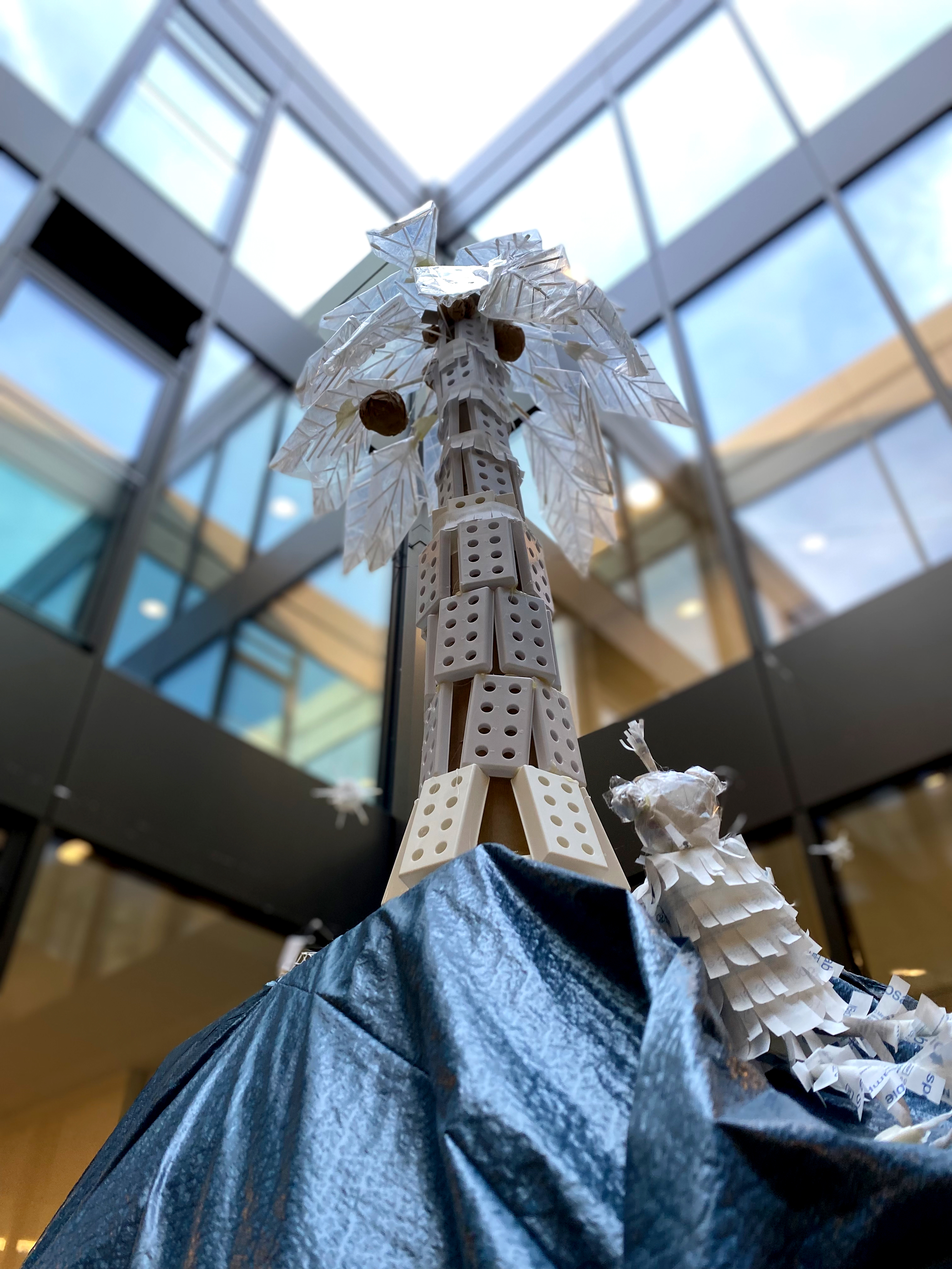 Aus diesem Ansatz heraus ist folgendes Kunstwerk entstanden: Eine Palme aus Plastik. Dabei handelt es sich um eine aus Müll von Coronatests konstruierte Palme.