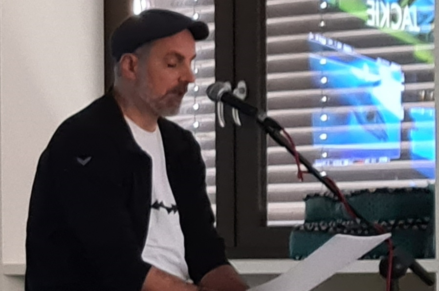 Leger gekleidet, mit roten Turnschuhen und Mütze – beides Symbole, die in der Selbstfindungsgeschichte eine Rolle spielen – und entspannt auf einem Pult sitzend stellt der Autor zuerst Jackie, in die sich Mauser verliebt, vor, liest das entsprechende Kapitel vor und zeigt anschließend den passenden Filmausschnitt. Dabei erfährt das gespannte Publikum, dass Nils Mohl das Drehbuch mit verfasst und bei der Entstehung des Films mitgewirkt hat. Natürlich gerät Mauser, der Ich-Erzähler, in einen Liebeskonflikt, nachdem er Edda, die so ganz anders als Jackie ist, kennengelernt hat, erzählt der Schriftsteller dann. Er liest die Kennenlernpassage vor und lässt danach den analogen Filmausschnitt laufen. Zwischen wem sich Mauser, der auf dem Weg zum Erwachsenwerden in mehrere schwierige Situationen gerät, entscheidet, verrät Nils Mohl nicht.