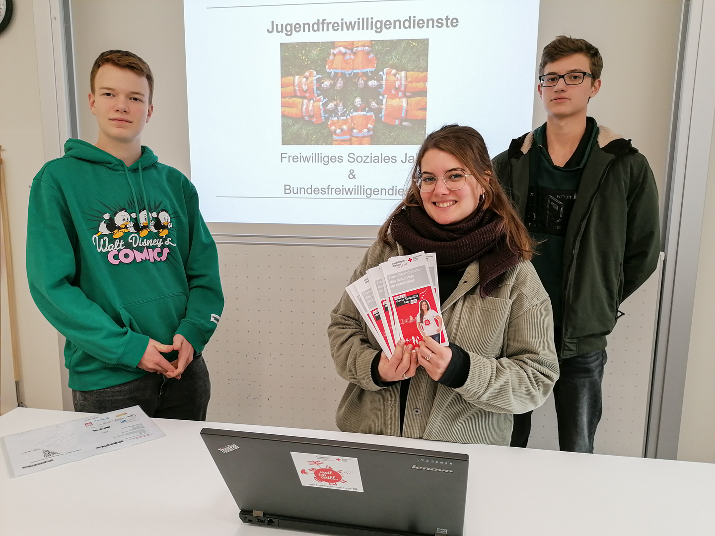Münsterschwarzach. Der Bundesfreiwilligendienst bietet die Möglichkeit, sich ein Jahr in einem Berufszweig auszuprobieren und die eigenen Stärken in Bezug auf die Berufswahl besser kennen zu lernen. So stellte Rebecca Ehrensberger vom Bayerischen Roten Kreuz am Egbert-Gymnasium diesen Weg nach dem Abitur vor. So kann man sich in einer sozialen Einrichtung engagieren und gleichzeitig die Wartezeit auf einen Studienplatz oder eine Ausbildungsstelle sinnvoll nutzen. Neben der praktischen Arbeit in der Einsatzstelle finden in regelmäßigen Abständen Bildungsseminare statt. Der Träger bezahlt ein Taschengeld und übernimmt die Sozialversicherungsbeiträge. Auch die Abtei Münsterschwarzach bietet die Möglichkeit des freiwilligen sozialen Jahres (FSJ) oder des Bundesfreiwilligendienstes an.