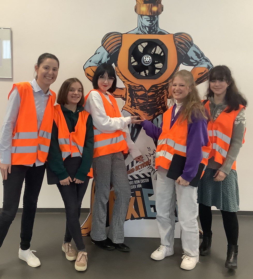 Münsterschwarzach/Mulfingen. Die Französischklassen der 9a, 9b und 10a besuchten im Rahmen des deutsch-französischen Tags das Unternehmen EBM-Papst in Mulfingen, Baden-Württemberg. Dort lernten sie die Produktion und den Vertrieb der Ventilatoren kennen, wurden auf Französisch über die Geschäftsstelle in Frankreich informiert und entdeckten den Standort in einer interaktiven Führung. Zum Schluss wurde der Besuch durch eine Einladung zum Mittagessen abgerundet. Lehrerin Antonia Miecke hatte die Fahrt organisiert.
