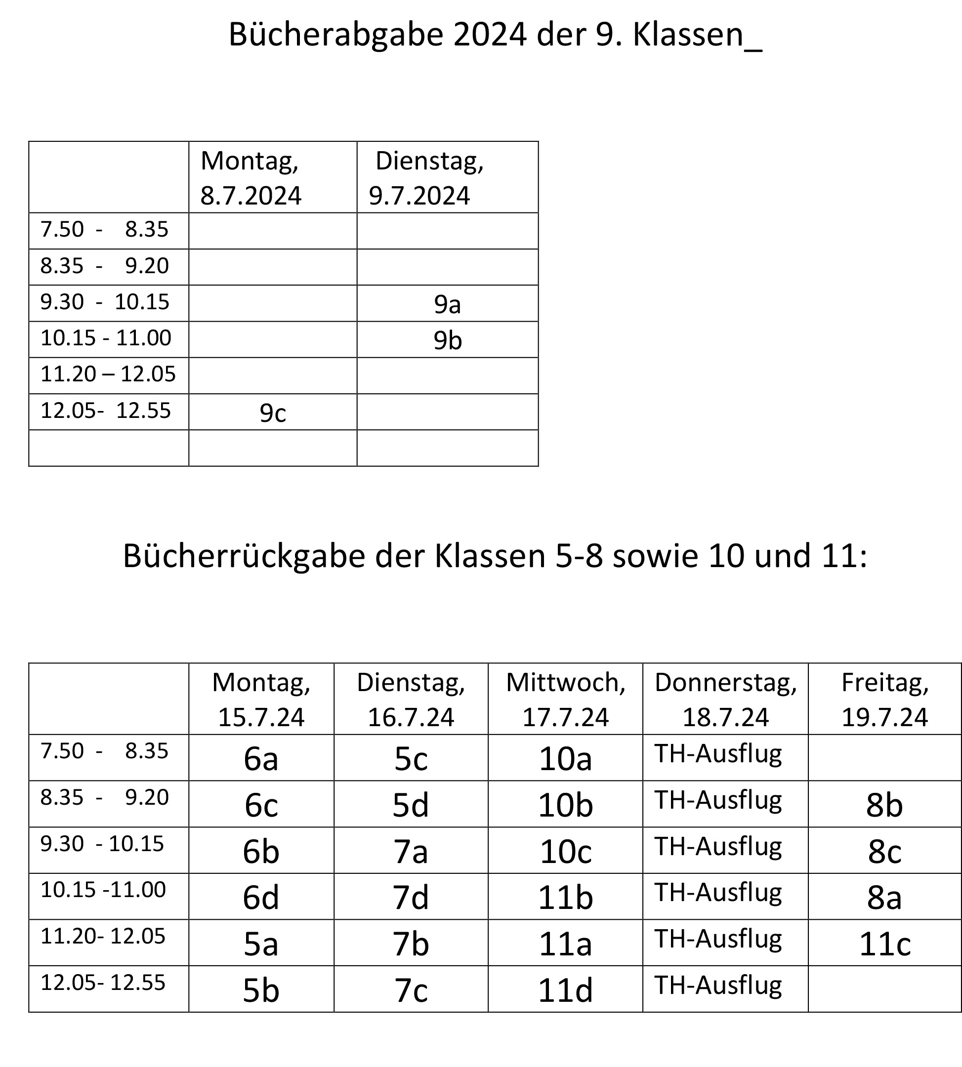 Zu folgenden Terminen finden die Bücherabgaben statt.