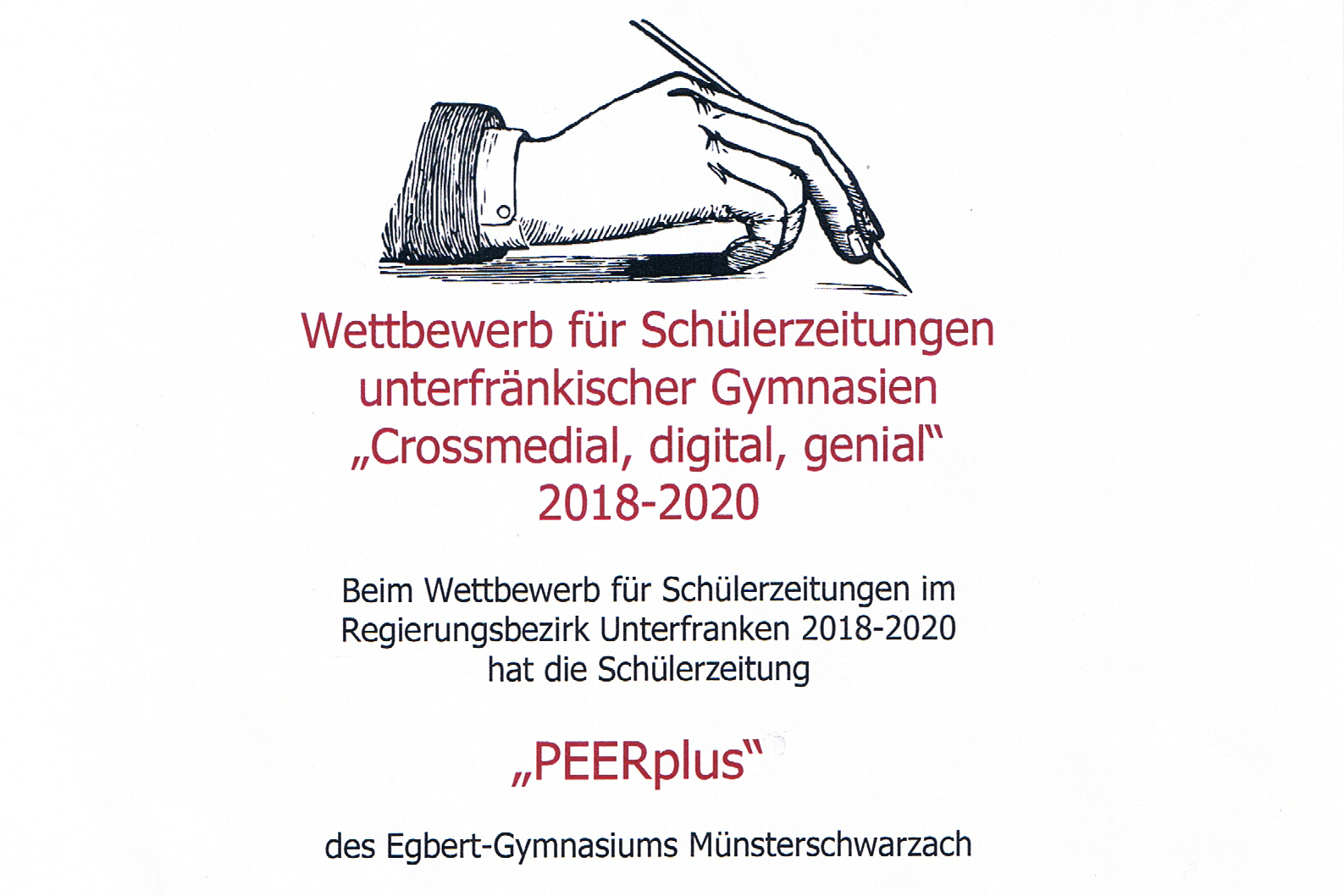 Doppelte Freude am Egbert-Gymnasium: Die Schülerzeitung „PEERplus“ errang beim unterfränkischen Schülerzeitungswettbewerb in beiden Kategorien den Sieg. Jannika Lechner wurde als beste...