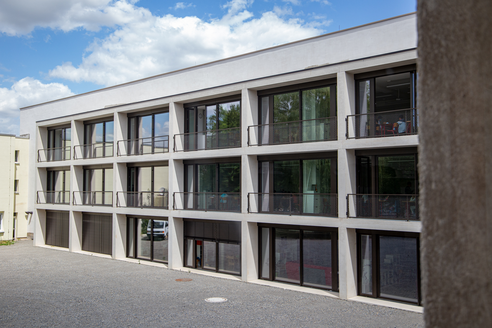 In den Ferien wurde fleißig im neuen D-Bau gearbeitet. Die Werbetechnik der Firma Höhn hat die ersten Grafiken für das Wegeleitsystem...